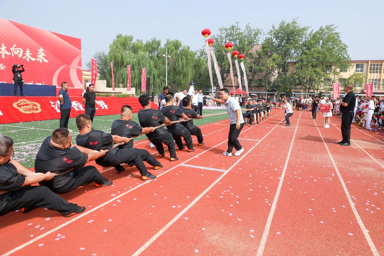 汾酒党委书记、董事长袁清茂为拔河比赛决赛开哨。