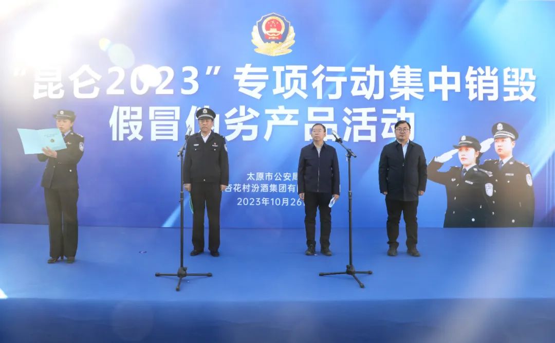 汾酒作为酒企代表参加“昆仑2023”专项行动集中销毁假冒伪劣产品活动