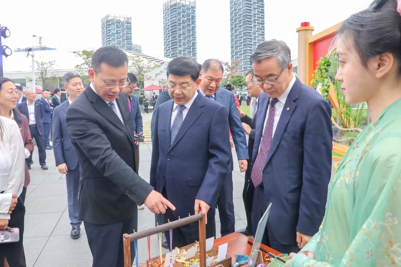 活动前,与会领导嘉宾沉浸式体验了一场视觉与听觉、味觉、品质与文化传承交融的盛宴,了解了由竹叶青酒十二味草本配方搭配的香囊手作和竹叶青酒五个“一”解密展板介绍。