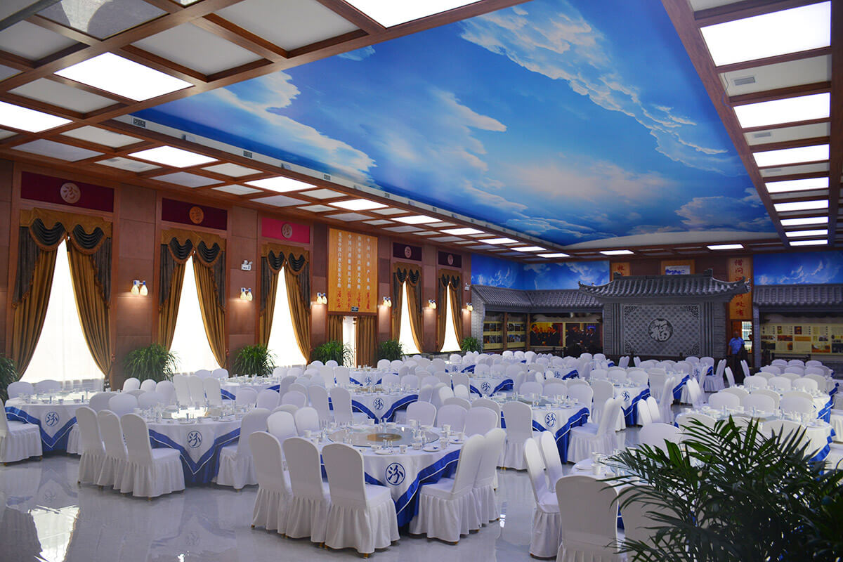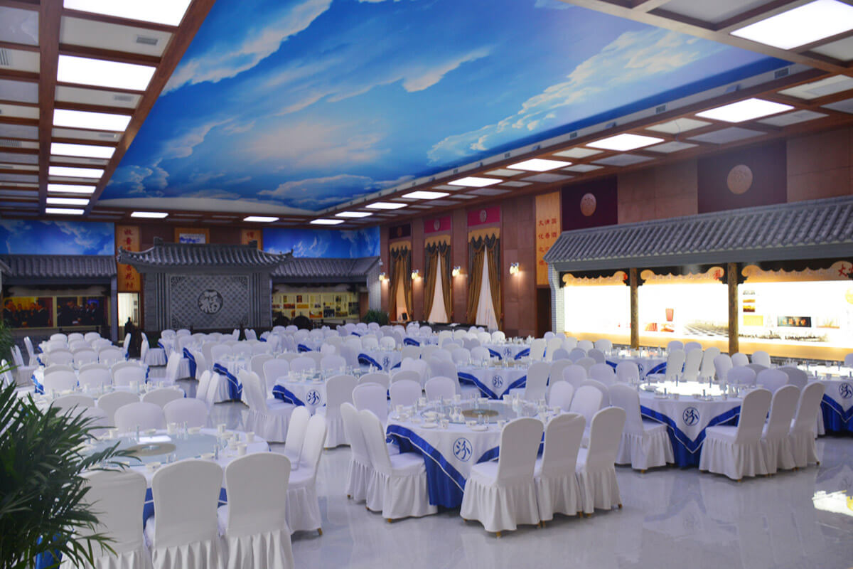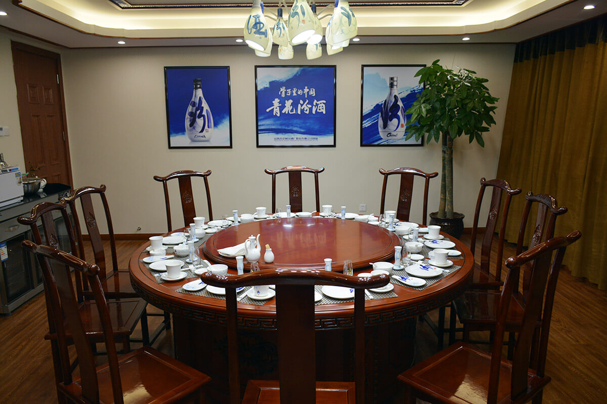 设有中餐厅,对外餐厅,火锅楼,大型宴会厅1个,风格各异的小餐厅30个,能同时提供600人就餐。餐厅提供汾酒、竹叶青、白玉、玫瑰等名酒,制作浓郁特色的汾阳地方风味和著名于世的山西面食。